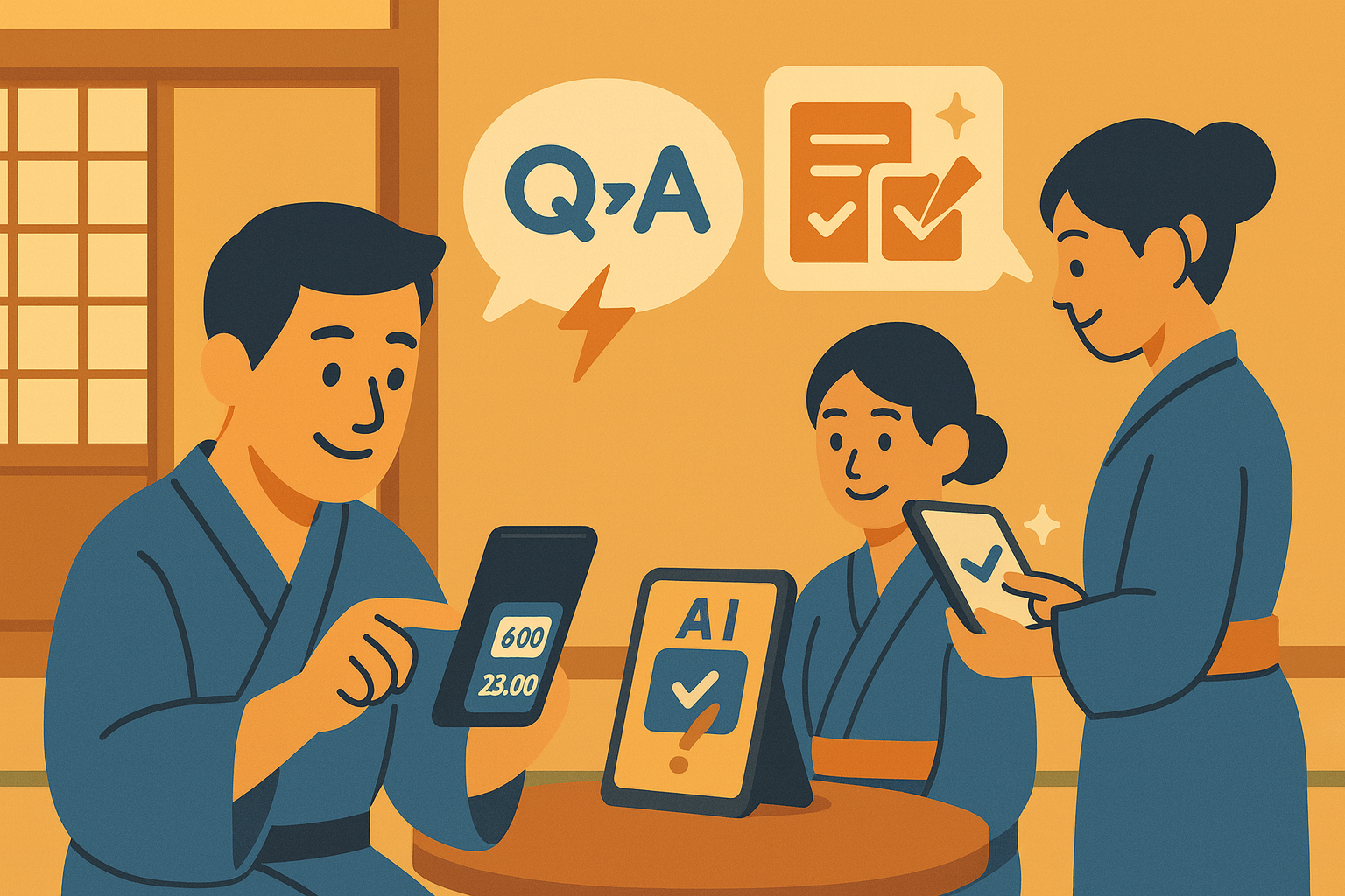 設備・アメニティ・支払いなどの定型質問はゲストのスマホで完結し、自己解決率は60〜80% に上昇。フロントの滞留は 平均25%短縮 し、スタッフは付加価値業務に集中できます。