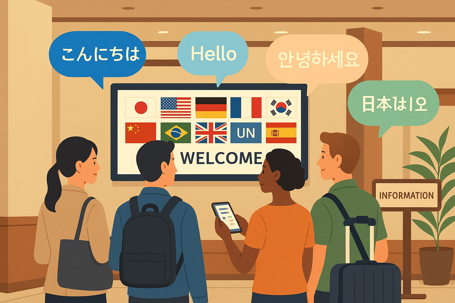 「ウェルカム QR」は、宿泊施設の利用者がどの国から来たかにかかわらず、世界95カ国以上の言語に対応しているチャットボットです。さまざまな背景を持つお客様も安心して利用できます。このシステムにより、言語の障壁を越えて、すべてのお客様に適切な情報を提供し、快適な宿泊体験をサポートします。